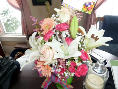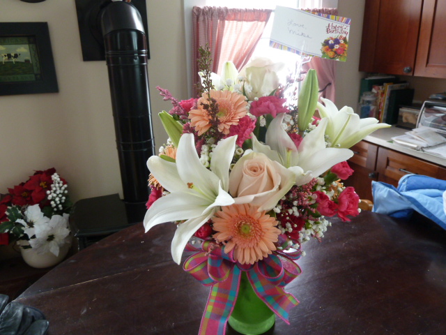 My son also got me a beautiful flower arrangement and a huge card from him, his fiance, and the grandkids. I need to take pictures of them, but haven't yet.